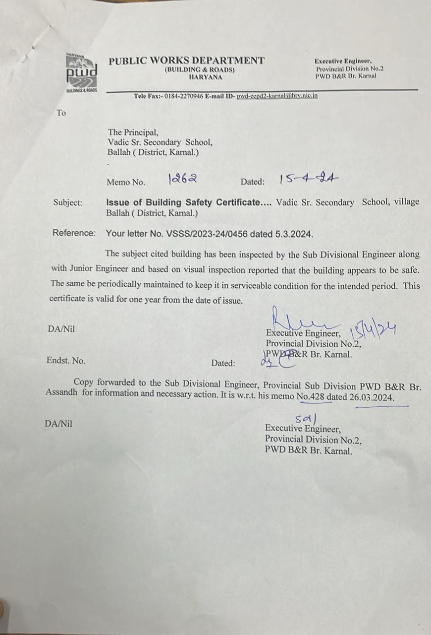 DISCLOSURE FORMS SELF DECLARATION AGAINST RTE ACT 2009 Click Here to Download UPGRADATION TO 12TH Click Here to Download HBSE AFFILIATION Click Here to Download CERTIFICATE OF LAND Click Here to Download BUILDING SAFETY CERTIFICATE Click Here to Download FIRE CERTIFICATE Click Here to Download HYGIENIC CERTIFICATE Click Here to Download INFRASTRUCTURE DETAILS Click Here to Download ACADEMIC CALENDER FOR YEAR 2024-25 Click Here to Download ACTIVITY CALENDER FOR YEAR 2025-26 Click Here to Download SMC Click Here to Download MEMBER OF SOCIETY Click Here to Download FIRE SAFETY CERTIFICATE UPDATED Click Here to Download STAFF STATEMENT Click Here to Download FEE STRUCTURE 2025-26 Click Here to Download ANNUAL RESULTS 2024-25 Click Here to Download PTA 2025-26 Click Here to Download